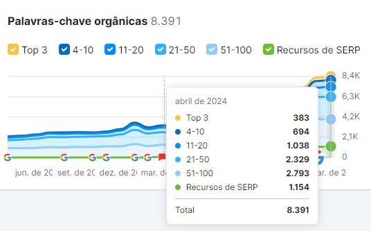 Além disso, foi conquistada uma presença marcante com mais de 8.000 palavras-chave indexadas nas buscas orgânicas.