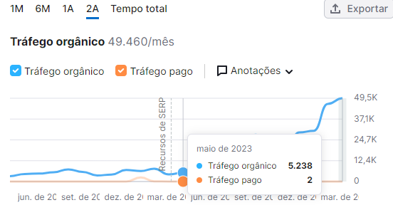 Durante esse período (deixando claro que, além dos artigos, o cliente realizou outras ações que não foram executadas por mim.) houve um crescimento no tráfego orgânico de mais de 700%.